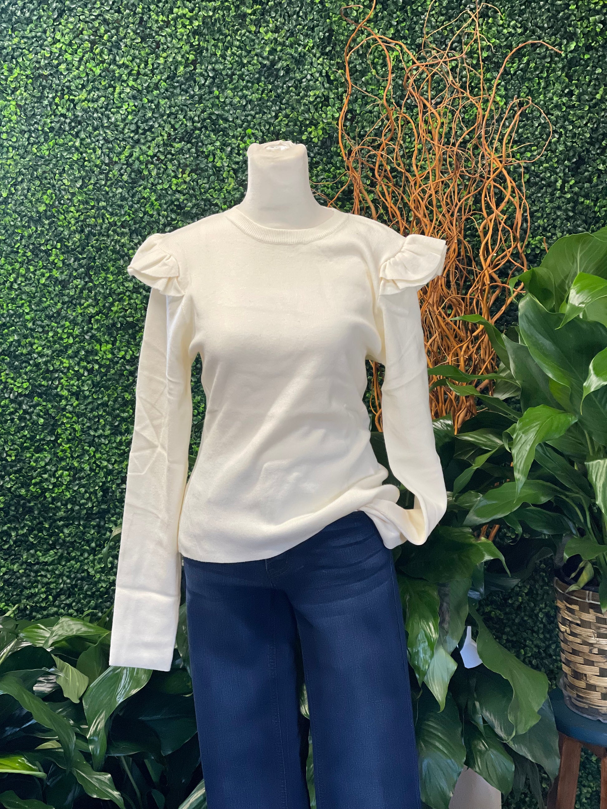 Upgrade your wardrobe with the Whitney Ruffle Sleeve Sweater! This stylish sweater features a unique ruffle sleeve detail that adds a touch of femininity to your look. Made with a blend of viscose, polyester, and nylon, it's the perfect combination of comfort and style. With a relaxed fit and classic round neck, this sweater is perfect for any casual occasion. Experience the ultimate in cozy fashion with the Whitney Ruffle Sleeve Sweater!